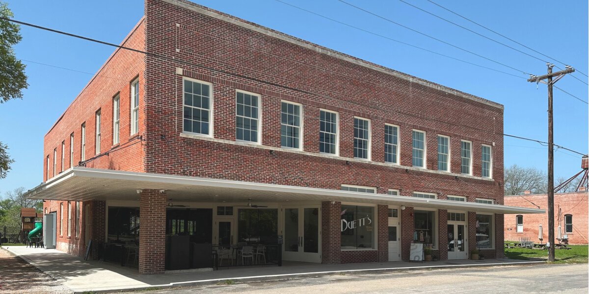 Determined to preserve this piece of Martindale’s history, Maury Domengeaux and Steve Schlossareck purchased the building in 2019 and completely restored and transformed it. Every detail was thoughtfully revived to honor the past while still breathing new life into the space. It was completed in 2023, now standing as a vibrant centerpiece in downtown Martindale.